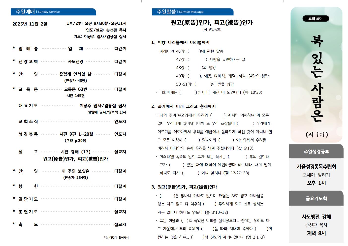 2025년 11월 2일 주일예배 admin2025-11-08T14:43:38+09:00공유해주세요!FacebookTwitterGoogle+ Related Posts 2025년 12월 14일 주일예배 2025년 12월 14일 주일예배 2025-12-13 | 0 Comments 2025년 12월 7일 주일예배 2025년 12월 7일 주일예배 2025-12-13 | 0 Comments 2025년 11월 23일 주일예배 2025년 11월 23일 주일예배 2025-11-22 | 0 Comments 2025년 11월 16일 추수감사주일 2025년 11월 16일 추수감사주일 2025-11-15 | 0 Comments 2025년 11월 9일 주일예배 2025년 11월 9일 주일예배 2025-11-08 | 0 Comments