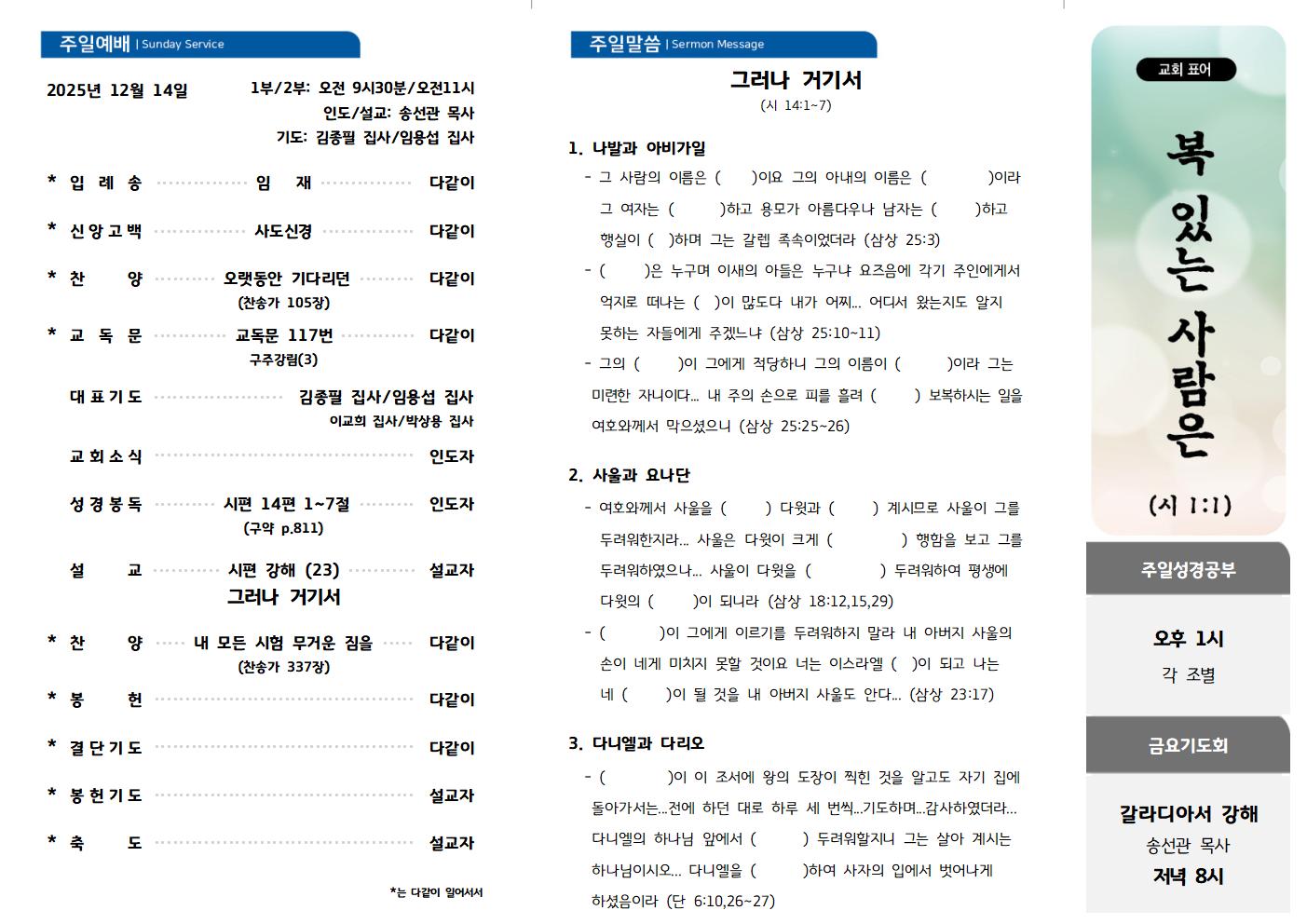 2025년 12월 14일 주일예배 admin2025-12-13T13:31:44+09:00공유해주세요!FacebookTwitterGoogle+ Related Posts 2025년 12월 7일 주일예배 2025년 12월 7일 주일예배 2025-12-13 | 0 Comments 2025년 11월 23일 주일예배 2025년 11월 23일 주일예배 2025-11-22 | 0 Comments 2025년 11월 16일 추수감사주일 2025년 11월 16일 추수감사주일 2025-11-15 | 0 Comments 2025년 11월 9일 주일예배 2025년 11월 9일 주일예배 2025-11-08 | 0 Comments 2025년 11월 2일 주일예배 2025년 11월 2일 주일예배 2025-11-08 | 0 Comments